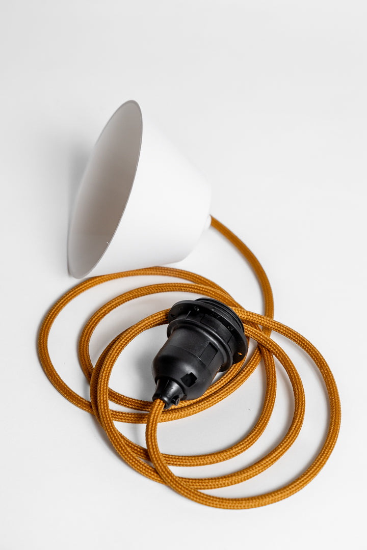 Ett takupphäng med textilklädd sladd, framtaget för att passa våra taklampskärmar med E27 fäste.