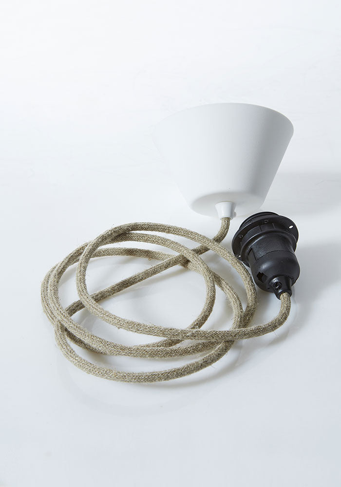 Ett takupphäng med textilklädd sladd, framtaget för att passa våra taklampskärmar med E27 fäste. Färgen "linne natur" är neutral och passar till alla takskärmar oavsett färg.